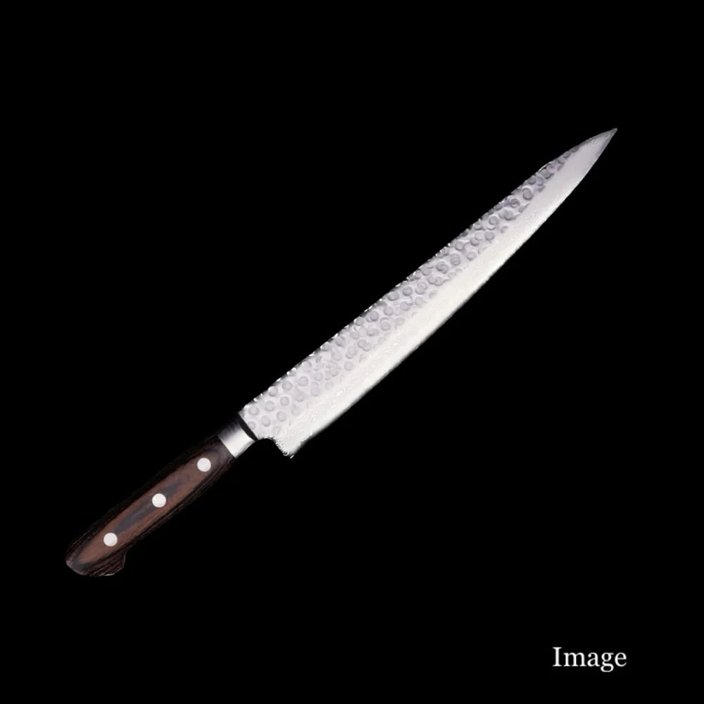 A yanagiba knife with a curved design like a Japanese sword. If you use it in an open kitchen, it's sure to grab the attention of your customers! It has a rosewood handle, so it has a high-class feel!