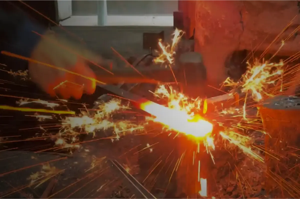 鋼を高温(およそ1000℃以上)に加熱し、叩いて形を整える作業です。