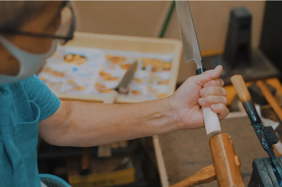 堺打刃物の刃付けは、熟練した職人によって手作業で行われ、その品質と精度は非常に高く評価されています。